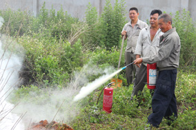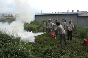 1、安全員給全體員工講解并演示滅火器的具體操作,并給每個員工實際操作滅火器。