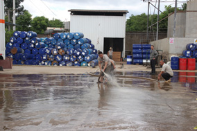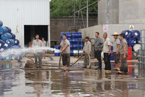 2、現(xiàn)場講解罐區(qū)噴淋的操作方法,請安全員操作噴淋并查看四個儲罐的噴水情況。安全員要求只給2號罐進行噴淋,安全員演示時,所有員工認真觀看。